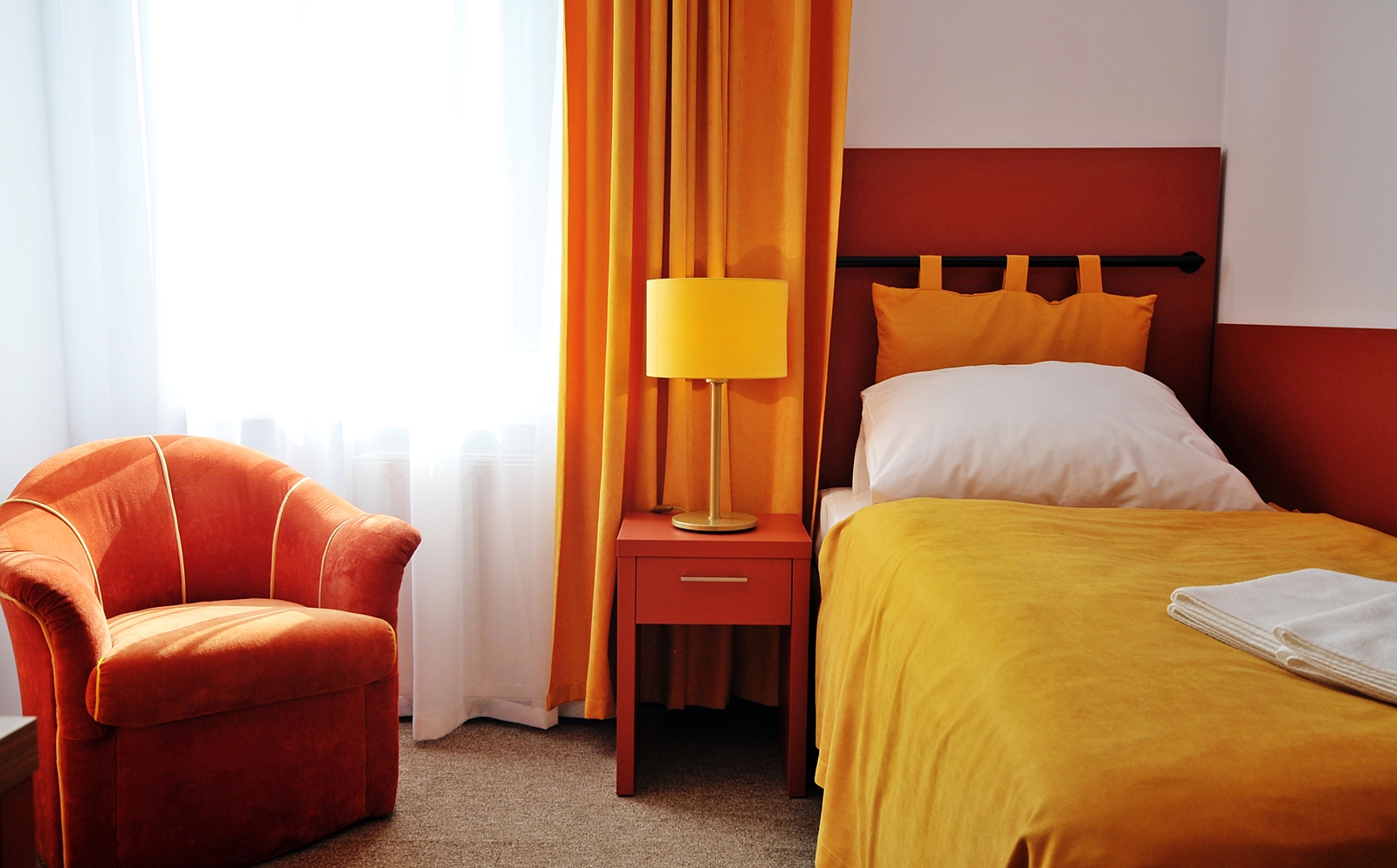 Pokoje jednoosobowe Standard znajdują się na każdym z 3 pięter i są zróżnicowane