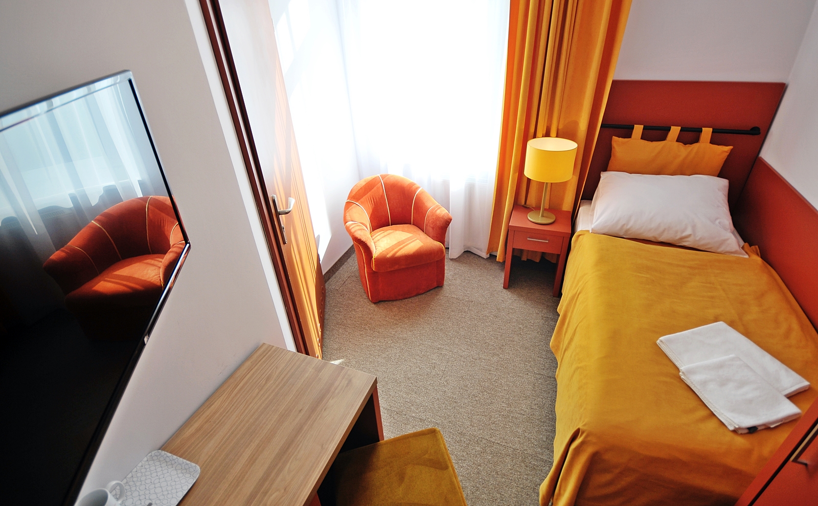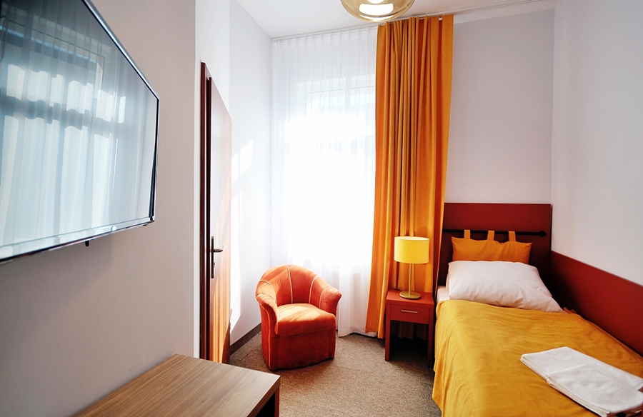 Pokoje jednoosobowe budget znajdują się na każdym z 3 pięter i są zróżnicowane
