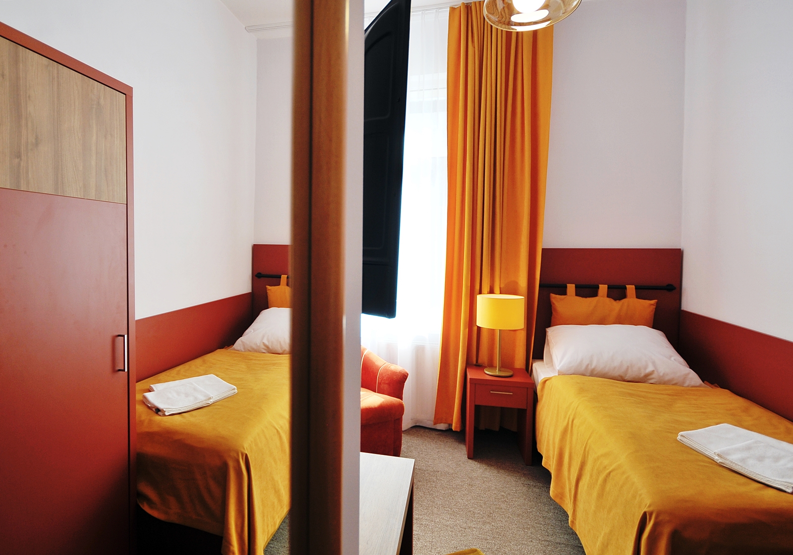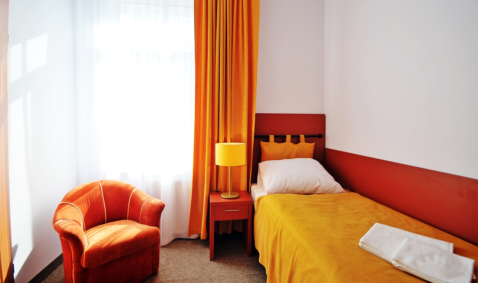 Pokoje jednoosobowe budget znajdują się na każdym z 3 pięter i są zróżnicowane